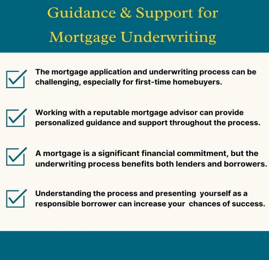 The mortgage application and underwriting process can be daunting, especially for first-time homebuyers. Working with a reputable mortgage advisor can provide personalized guidance and support throughout the application and underwriting process. They can assist you in understanding the lender's requirements, including the documentation needed, and help address further lender questions and any potential issues.